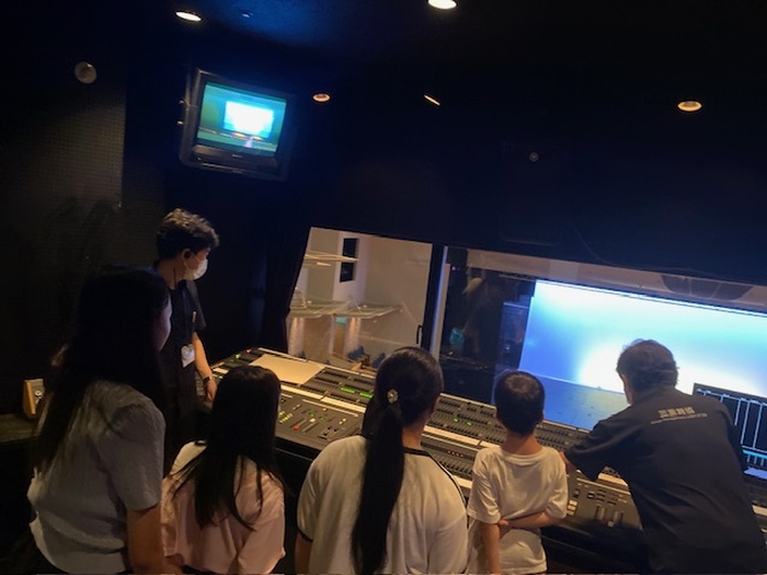 その後、舞台上や音響室、調光室やオペレーション室と言った、普段客席からは見えないお部屋に行き、実際に目の前でプロの舞台スタッフの実演を交えながら、舞台機構の動かし方や仕組みを学びました。子どもたちは最初から興味津々で、スタッフさんのお話をじっくり聞くだけでなく、体験時間では、子どもたち全員が積極的に参加し、ツアー終了まで楽しく学んでくれていました。