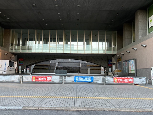 工事を安全に行うため、休館して作業を進めていますのでメインエントランスから図書館へは通行できないなどのご不便をおかけしています。いつものお散歩コースにそうぶんを選んでいた皆様も、工事休館期間中はお散歩コースから外していただきますようお願いします。何卒ご了承ください。