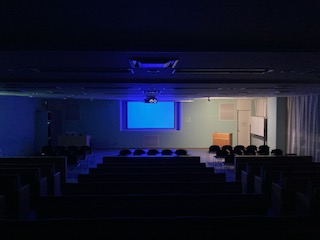 また、パワーポイント映像や動画を映しながら前方と講演者のみを明るく、見えやすくする照明も調整できるようになりました。5月からのご利用の際に、ぜひお試しください。