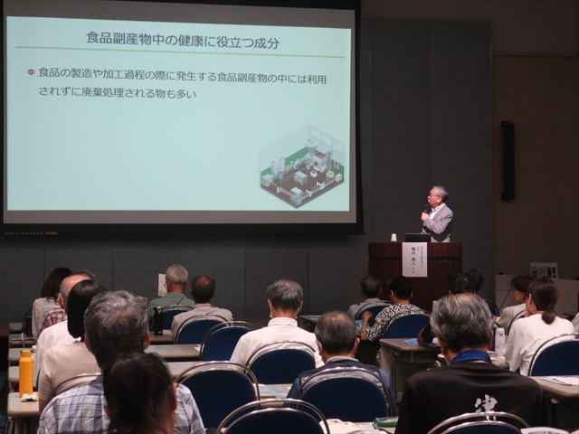 食品には栄養機能、感覚機能、生体調節機能という三つの機能があります。本講座では、特に生活習慣病の予防・改善など恒常性維持や疾患予防に役立つ機能である生体調節機能(三次機能)を持つ食品副産物に着目して、トウモロコシ・醤油粕・海苔・茶・小豆・柿から取り出せる健康に役立つ成分の研究についてお話しいただきました。