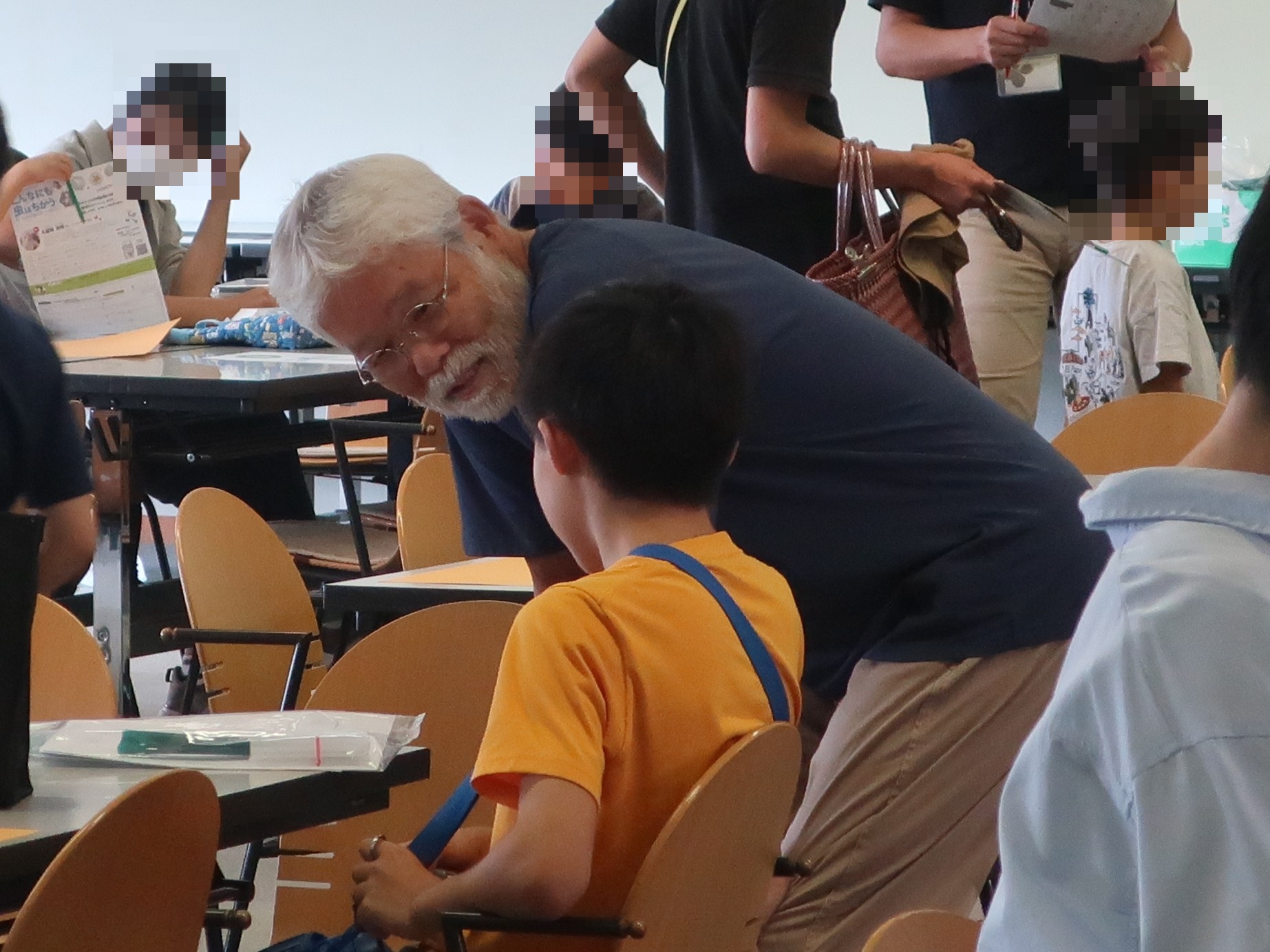 講師は、ラジオ「夏休み子ども科学電話相談」にも出演されていた、昆虫科学教育館館長の久留飛克明(くるびかつあき)さん。開講前から参加者の皆さんと「虫」の話がはずみます。