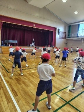 練習していくうちに動きも大きくなり、動きがそろっていき、楽しそうないきいきした表情がさらに増えてきました。全員で集中して取り組み、全員が一つになって楽しくプログラムに取り組むことができました。まさに、ナイスダンスでした。