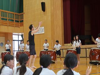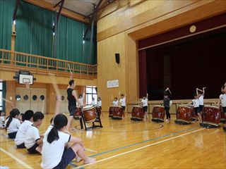 太鼓の演奏だけでなく、講師の姿を見て、言葉をしっかり聞くことの大切さについても学ぶことができた授業でした。