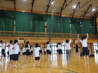 まずは準備運動の体操と300回ジャンプ。じっくりと体をほぐします。