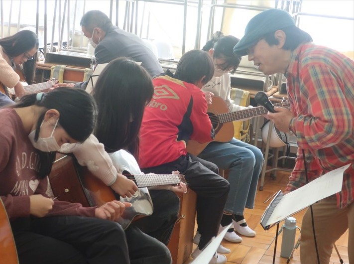 講師によるギターの伴奏、みんなの歌声と共に1つになって演奏しました。