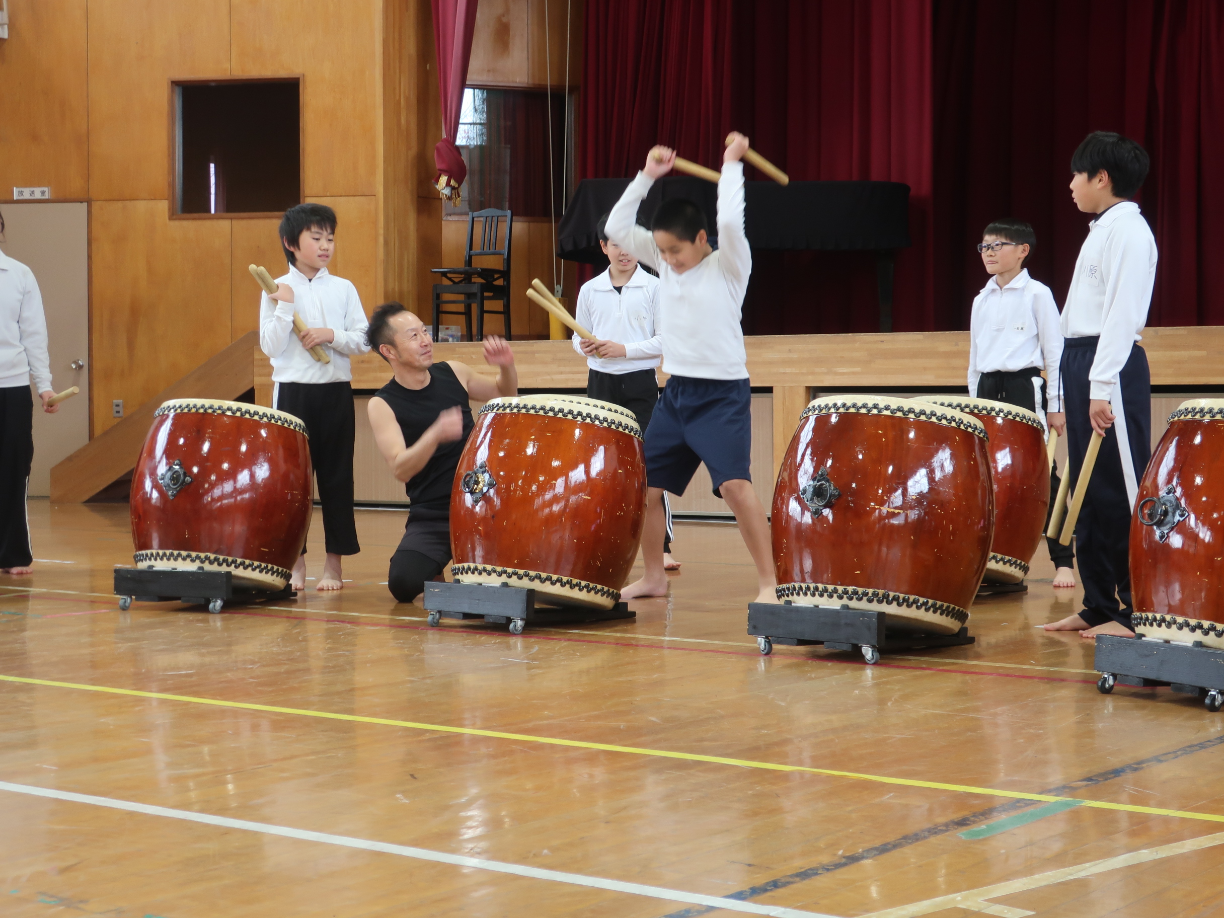 名張市立すずらん台小学校の3年生・6年生のみなさんに「太鼓ワークショップ」のプログラムをお届けしました。