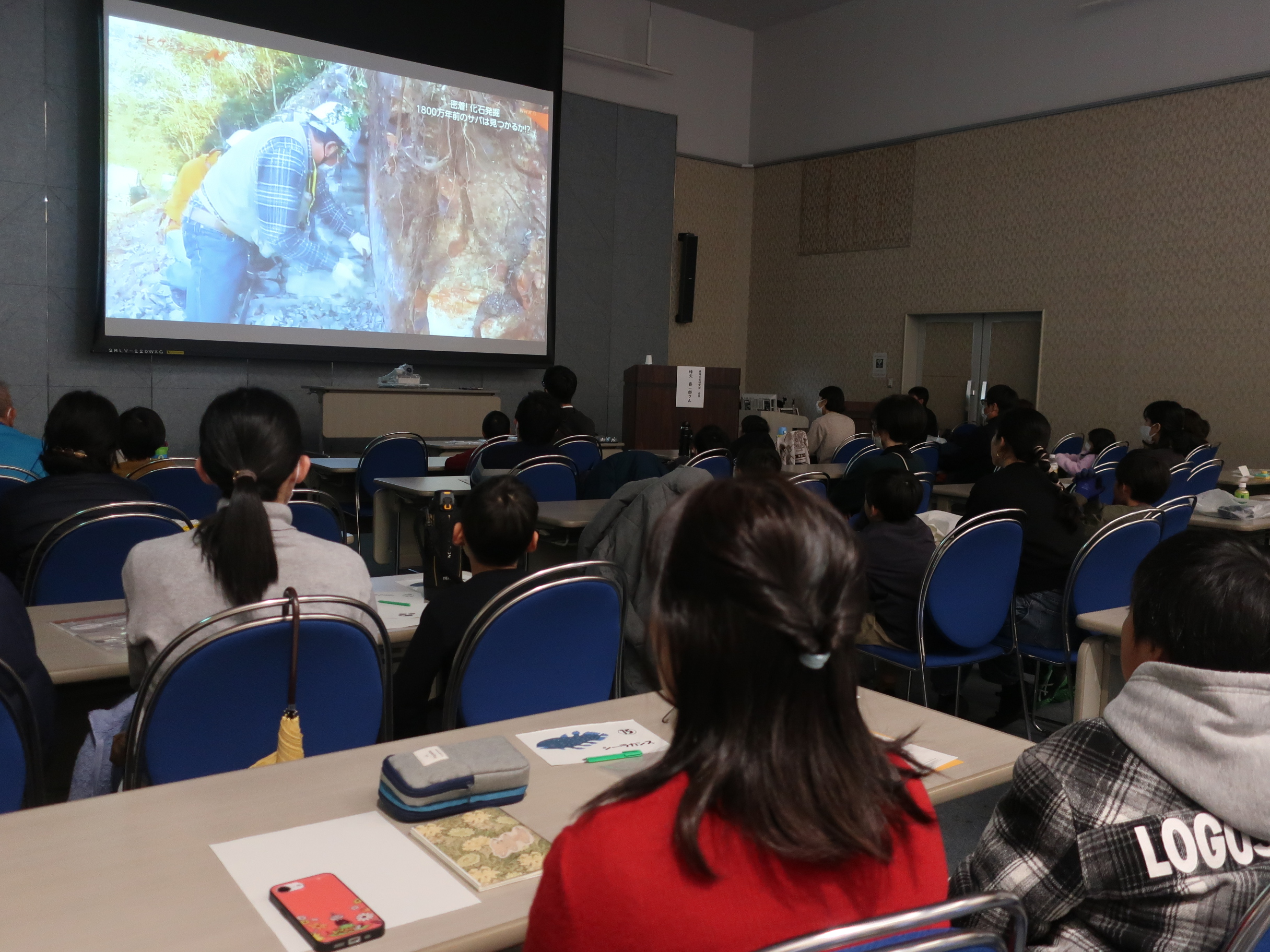 講座後半は、化石発掘体験の楽しさを感じられる映像の鑑賞から始まりました。