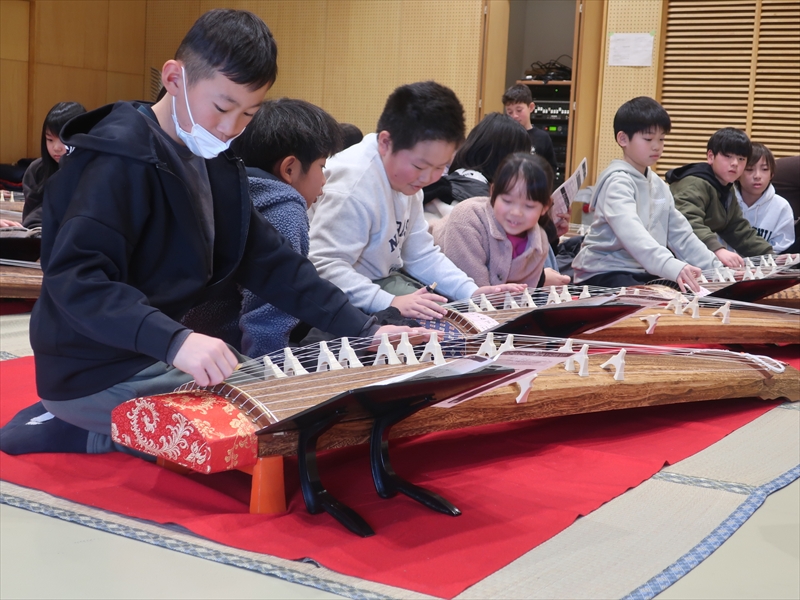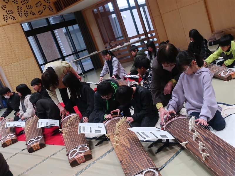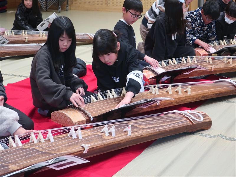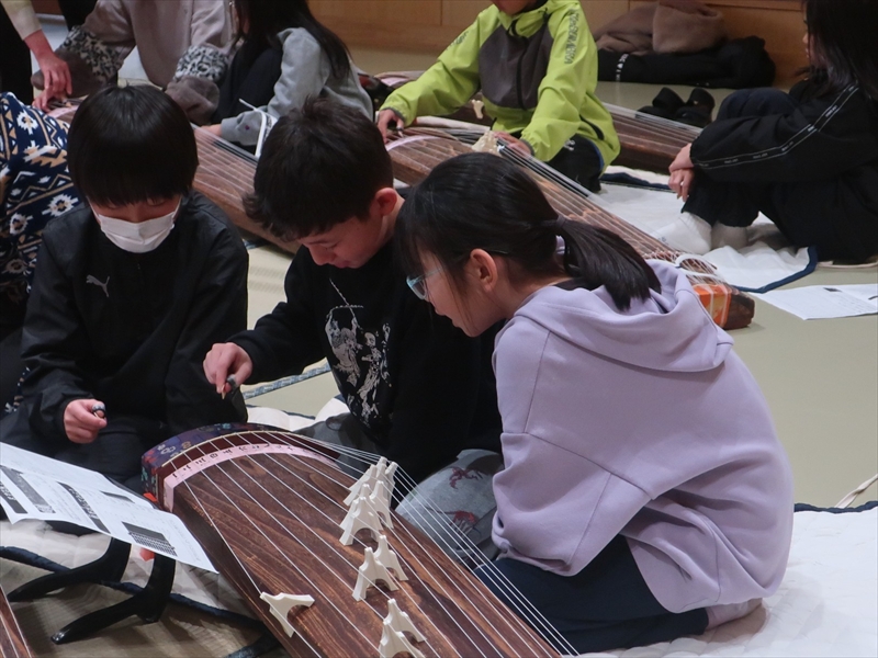 終了後には、「どこで習えますか?」「買うといくらくらいしますか?」と講師へ質問に来る子もいて、箏の魅力が十分に伝わったことがうかがえました。