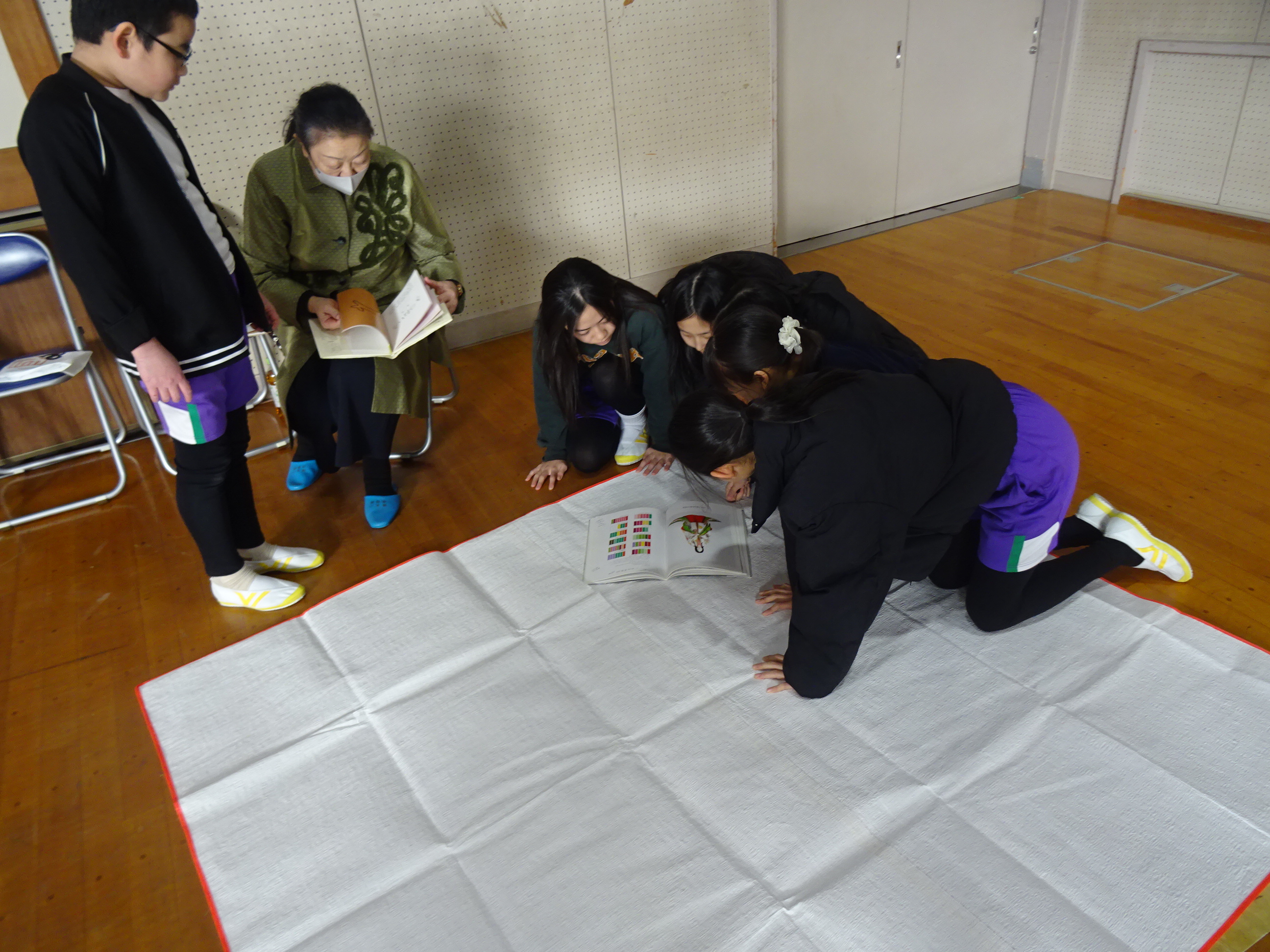 十二単の正式名称や着物の模様にも意味があること、束帯の裾の長さ、絹に用いられる蚕の頭数、当時のファッションについてなど、授業だけでは知ることのできない話に子どもたちは真剣に聞き入っていました。