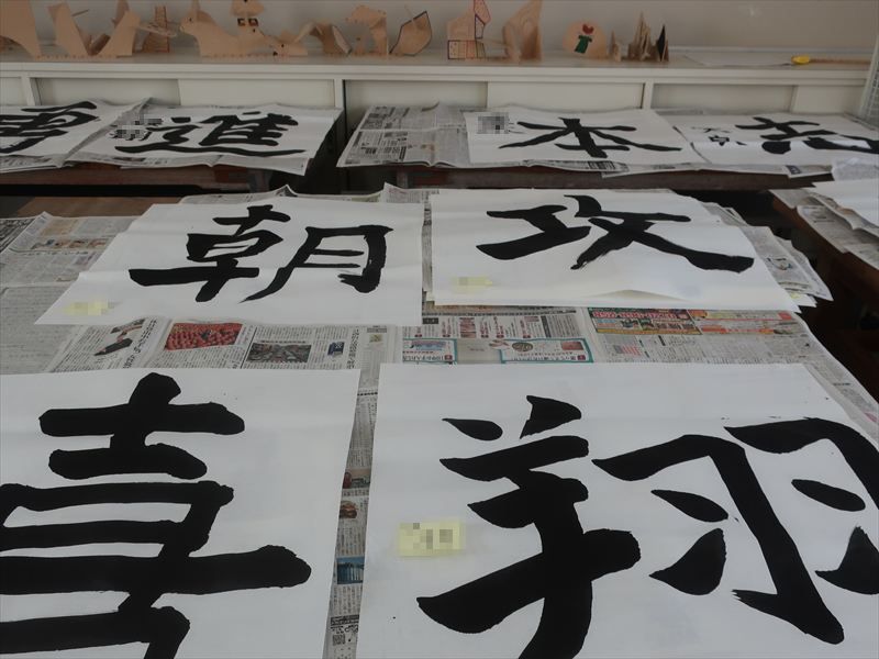 - 子どもたちは普段使わない太い筆を使い、大きな字が書け、とても喜んでいました。(先生)