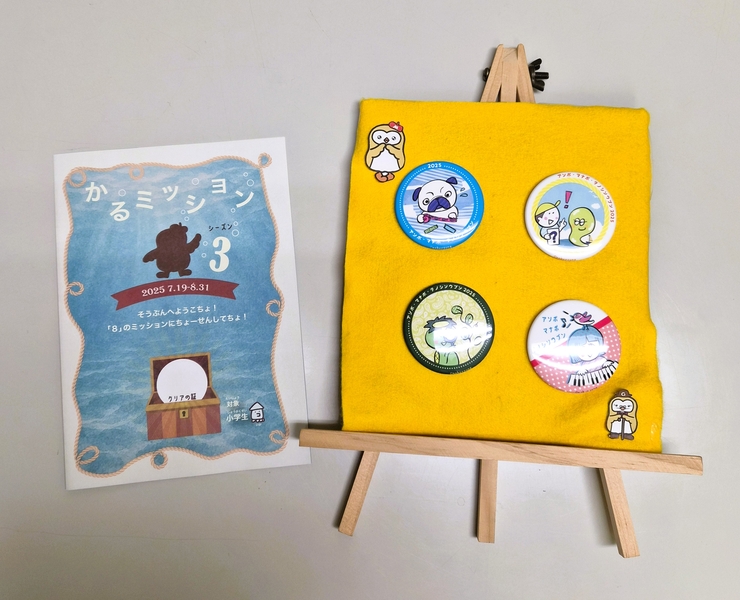 かるみーと一緒にクイズやミッションをクリアしてnobuyoung(のぶヤン)オリジナルイラストの缶バッジをもらおう!