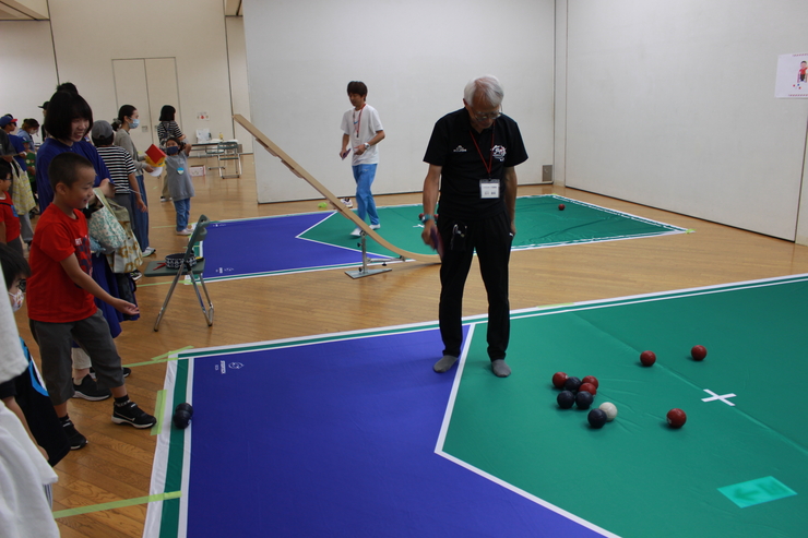 ボッチャやフライングディスクなど、誰もが楽しめる工夫が詰まったスポーツを体験できるスペースです。